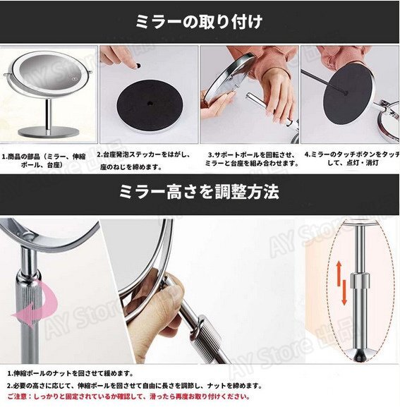 Product name: 拡大鏡 高さ調整女優ミラー 8インチ 卓上ミラー USB充電式 10倍 化粧鏡 LEDライト付きミラー スタンドミラー 10倍と等倍両面鏡 bhw0039