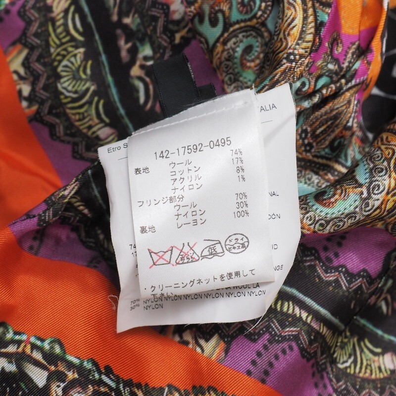 Product name: MI3032〇イタリア製*エトロ ETRO*ソフトツイード*フリンジ*裏総柄*ジャケット*ウールコットン*サイズ44*ブラック×イエロー