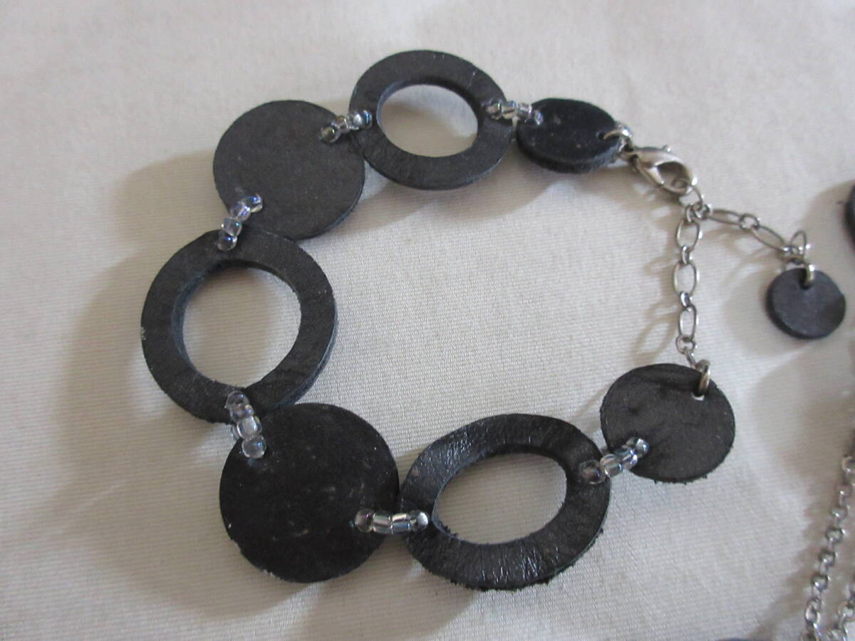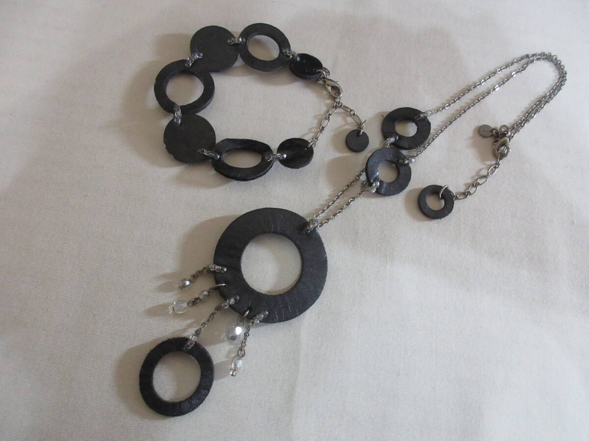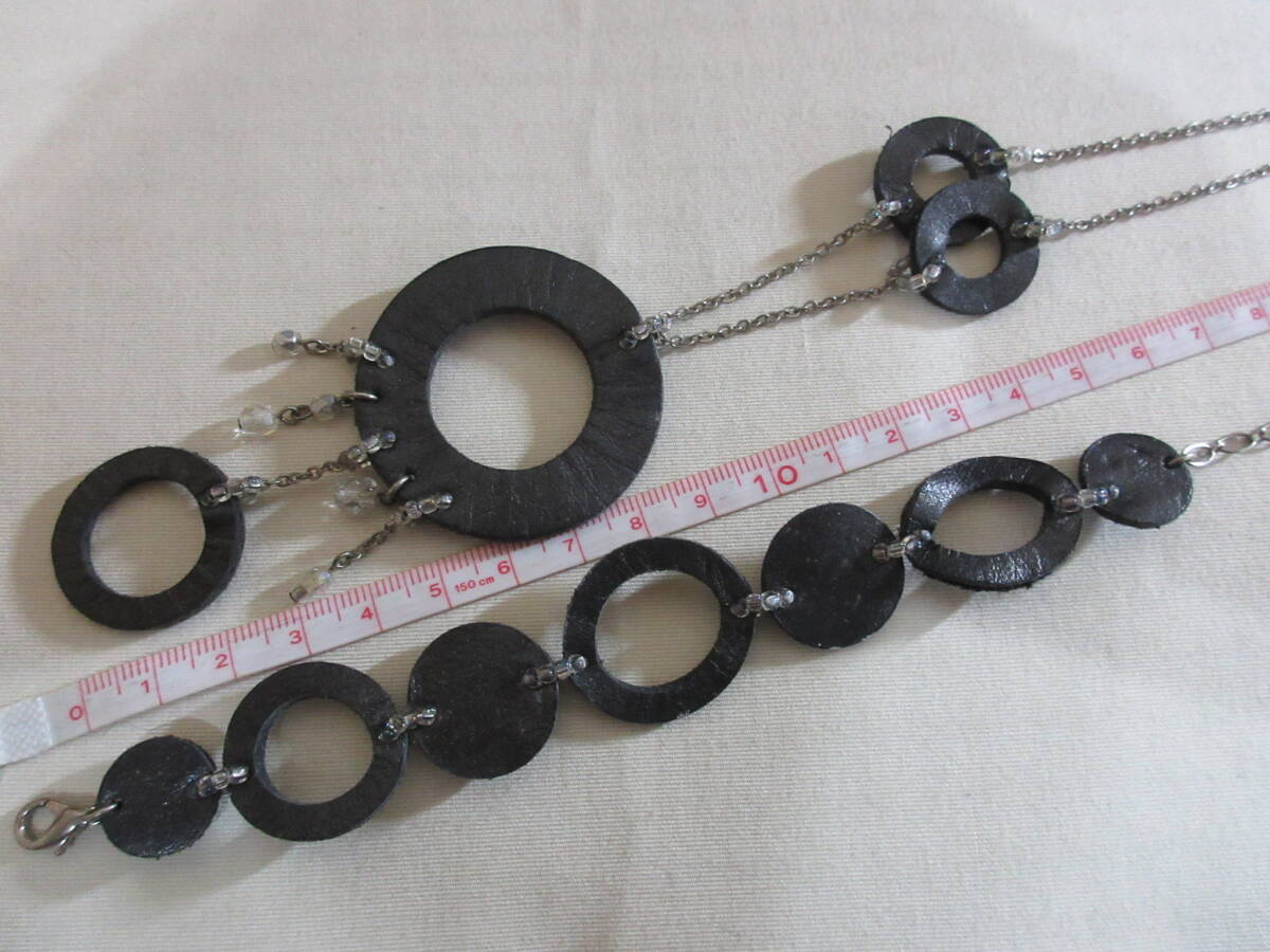Product name: *100円~【peyton place】ペイトンプレイス レザー使い サイクルデザイン シルバー×ブラック ネックレス&ブレスレットセット*T-47