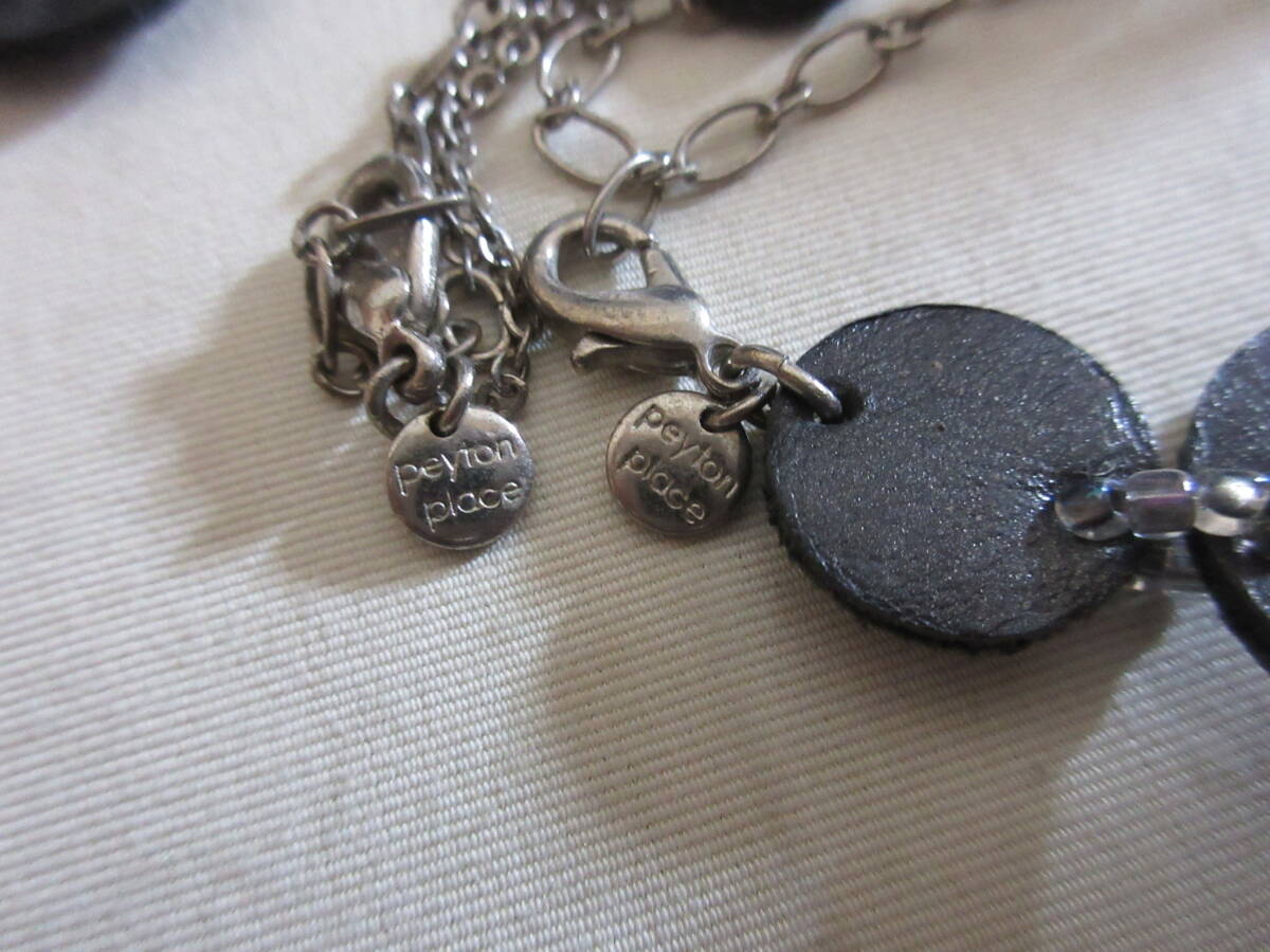 *100円~【peyton place】ペイトンプレイス レザー使い サイクルデザイン シルバー×ブラック ネックレス&ブレスレットセット*T-47