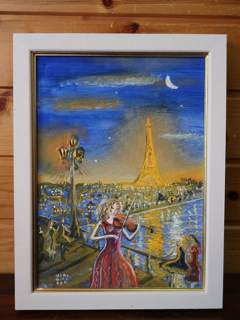 Product name: 【青宝】120562織田広比古「パリの空とパリジェン」油彩F4 肉筆額装(4399492/203)