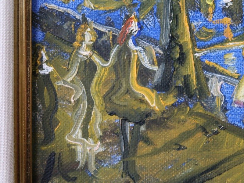 【青宝】120562織田広比古「パリの空とパリジェン」油彩F4 肉筆額装(4399492/203)