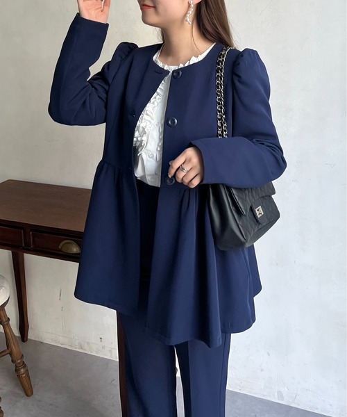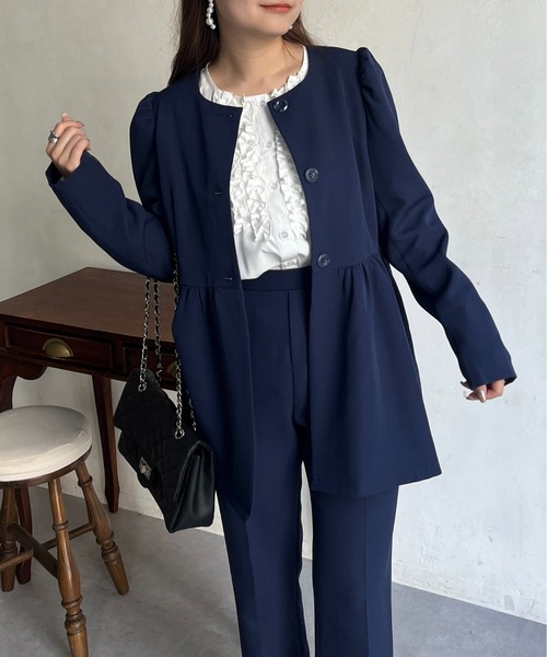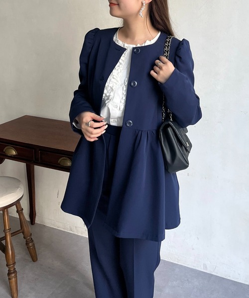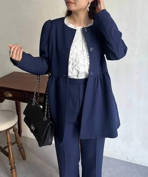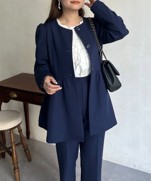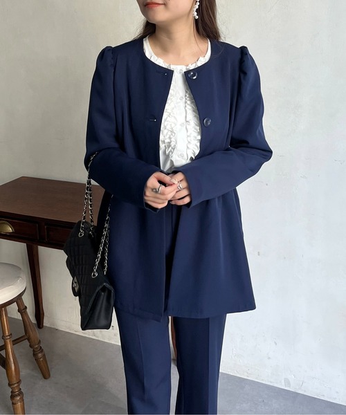 キーワード:ジャケット ノーカラージャケット レディース 無地