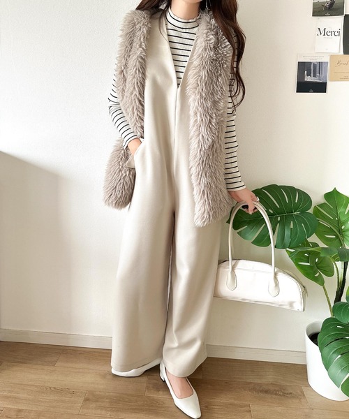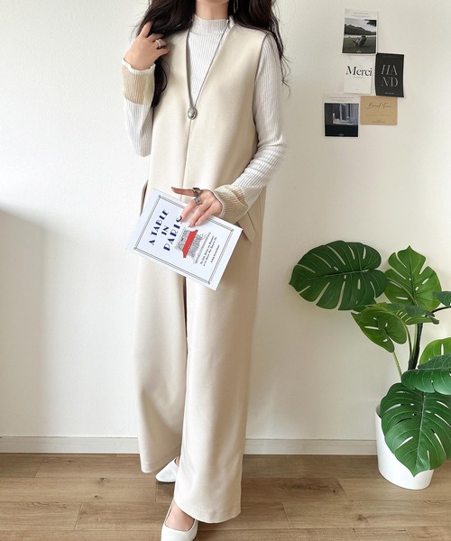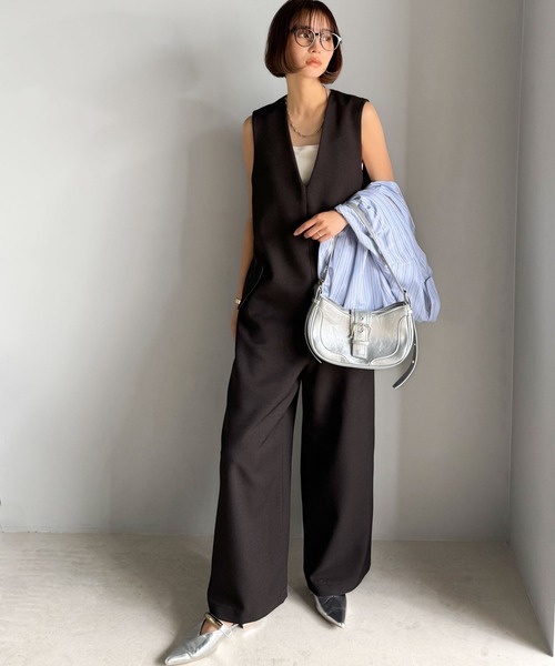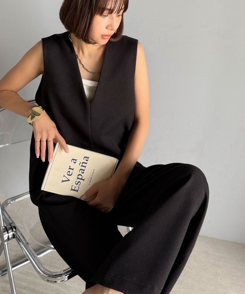 参考商品名:1枚でキマる私スタイル。フラップポケットVネックサロペット