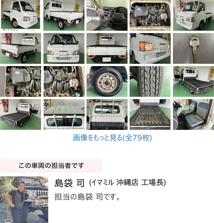 Product name: 【諸費用コミ】返金保証付:沖縄県発 現状販売 業販 H14年 スバル サンバートラック 4WD 白 81,729km 車検R8年3/14 TT2