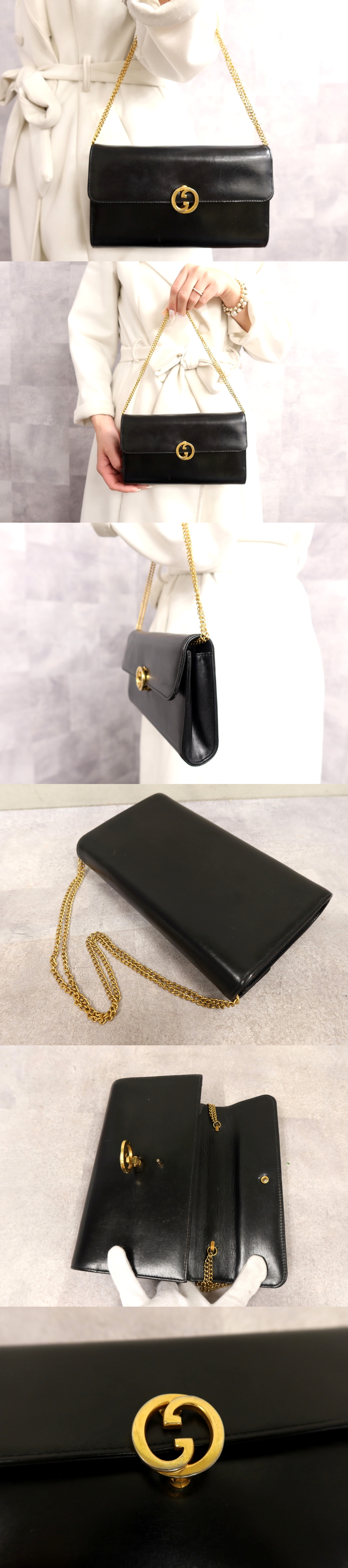 Product name: ●超美品●GUCCI オールド グッチ●カーフ レザー 本革●チェーン ショルダー バッグ●黒●ゴールド金具●腕掛け●ヴィンテージ●Js65720