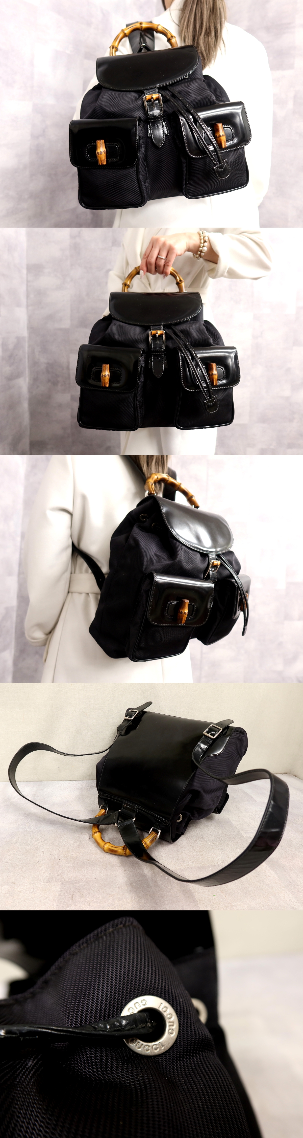 Product name: ●超美品●GUCCI グッチ●バンブー●ナイロン エナメル パテント レザー 本革●リュックサック●黒●シルバー金具●B5 書類 収納●Js65835