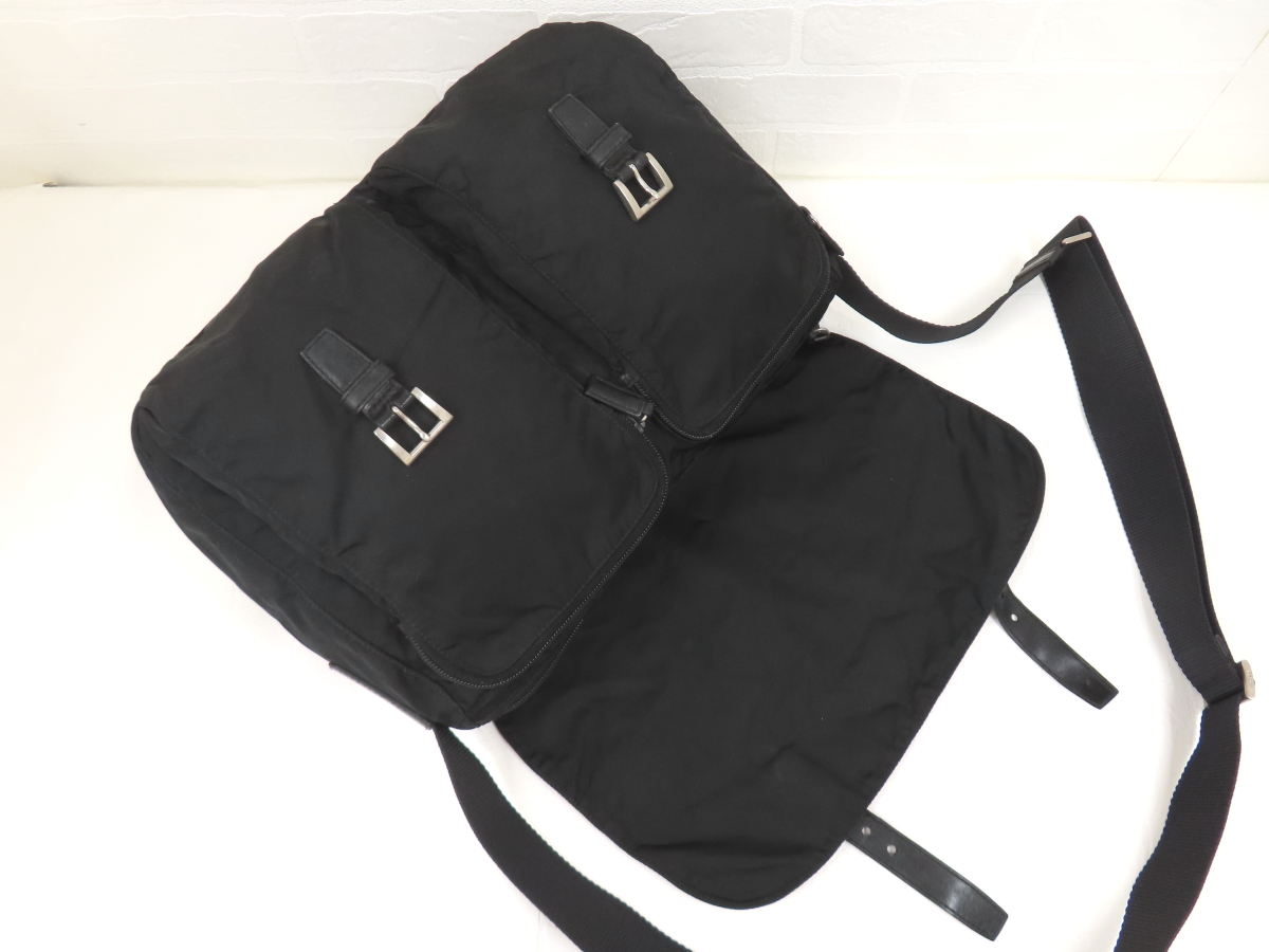 Store ◆美品◆PRADA プラダ◆ナイロン カーフ レザー 本革◆ショルダー バッグ◆ブラック シルバー金具◆イタリア製◆斜め掛け◆A16070