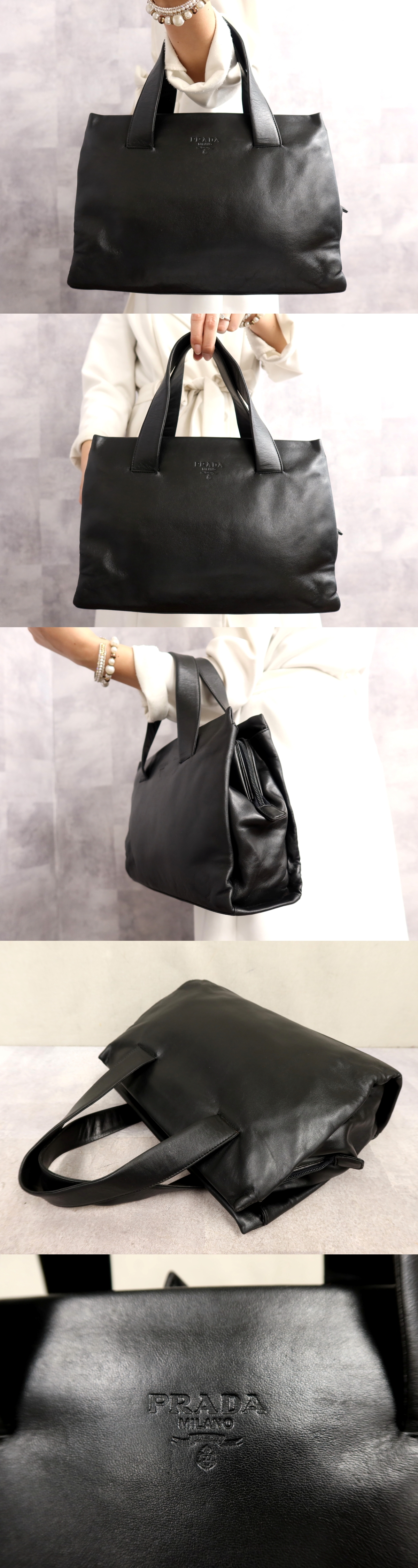 Product name: 超美品●PRADA プラダ●ロゴ型押し●ナッパ レザー 本革●ハンド バッグ●黒●ゴールド金具●イタリア製●ヴィンテージ●B5 収納●Js66180