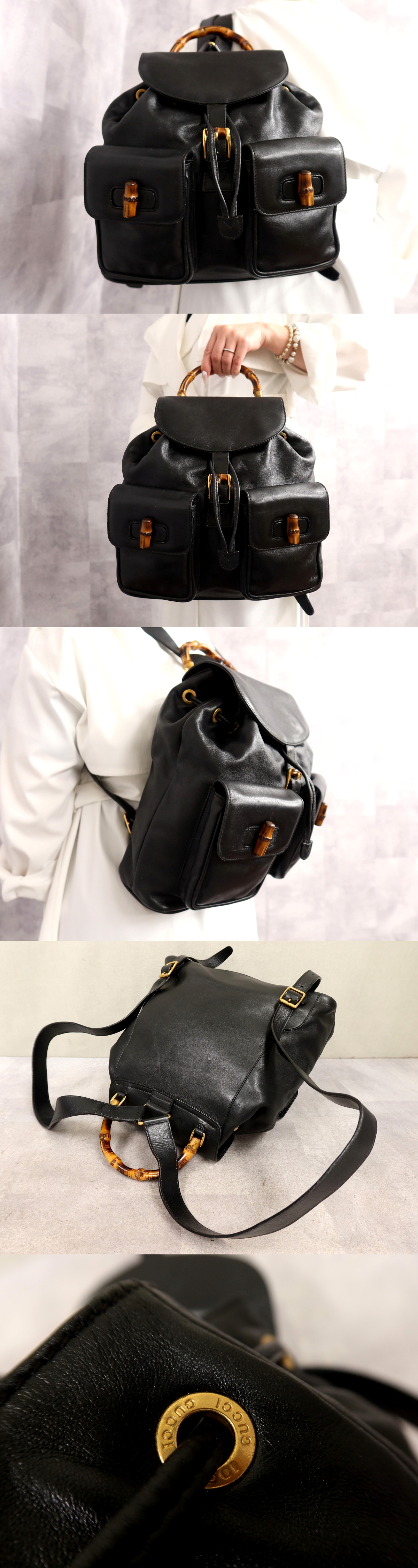 Product name: ●超美品●GUCCI グッチ●バンブー●カーフ レザー 本革●リュックサック●黒●ゴールド金具●イタリア製●B5 収納 書類 かばん●Js66991