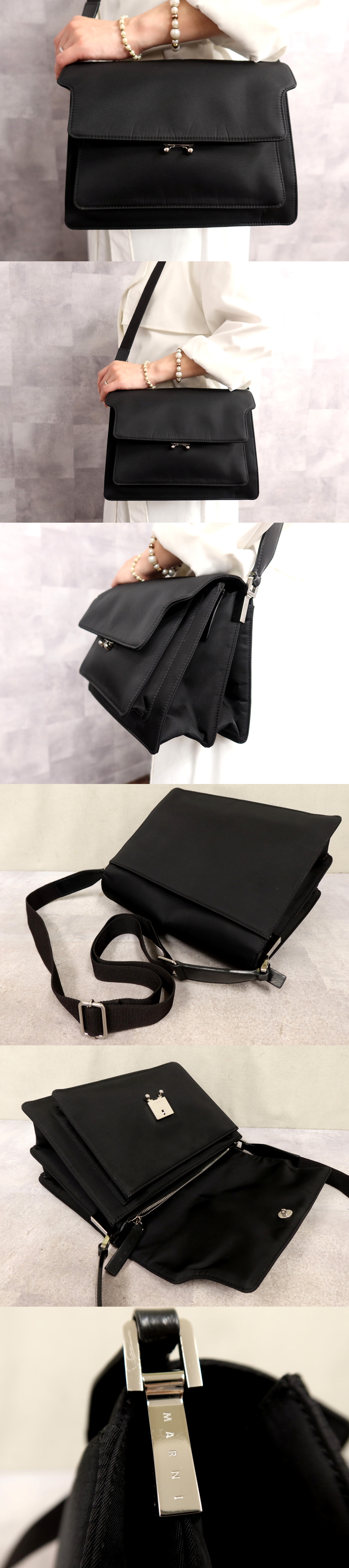 Product name: ●超美品●MARNI マルニ●トランク●ナイロン●ショルダー バッグ●黒●シルバー金具●肩掛け●かばん●Js67257