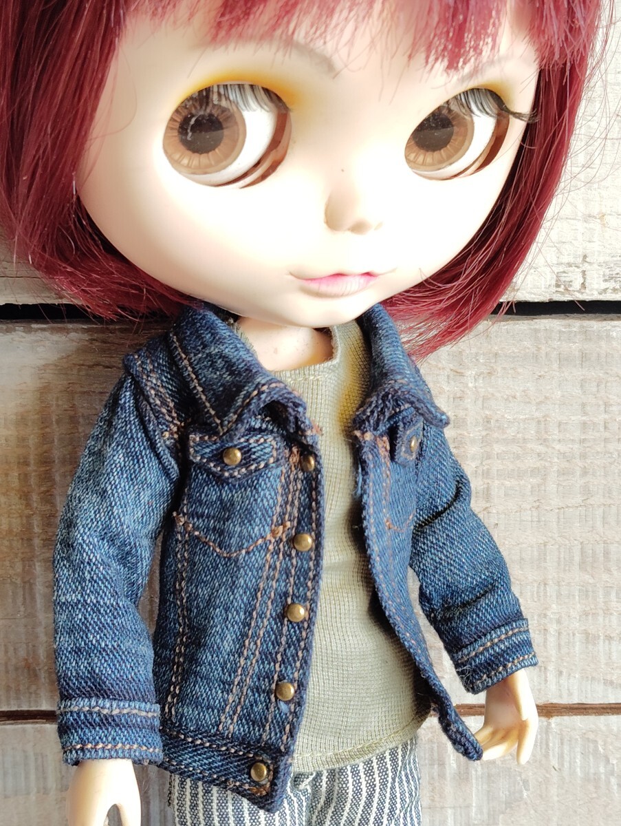 デニムGジャンUSED加工3 ネオブライス リカちゃん オビツ ピュアニーモ ハンドメイド アウトフィット Blythe outfit