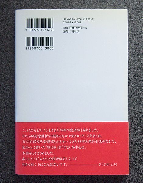 単行本「心をひとつに響かせる!」市立柏高校吹奏楽部 石田修一著 吹奏楽部強豪校の指導者は生徒に何をどう伝えてきたか 二見書房 2013年