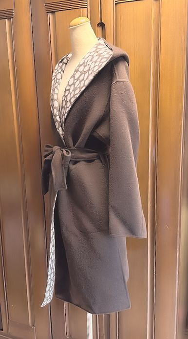 ◎硬すぎず柔らかめのナイロン混ウール素材を用い、内側のアニマルプリントをさり気なく覗かせるデザインが素敵なコートです。ガウンタイプに見えますが、フロントに隠しホックが付いており、ベルトを外し前を閉じて着ることもできます。コートは毎シーズン買い足すようにしておりますが、長持ちするものも多く増えてしまい、迷った末の出品です。綺麗なうちにいかがでしょう★