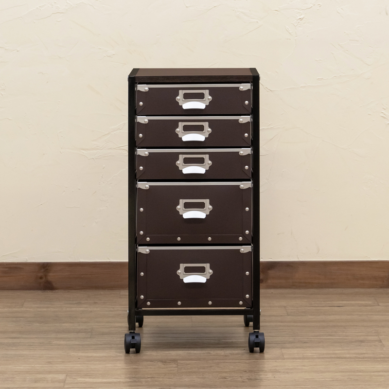 Product name: 5段 収納チェスト 引き出し ワゴン デスクサイド 書類ケース 軽量 収納キャスター付 ブラウン TCP-05(BR)