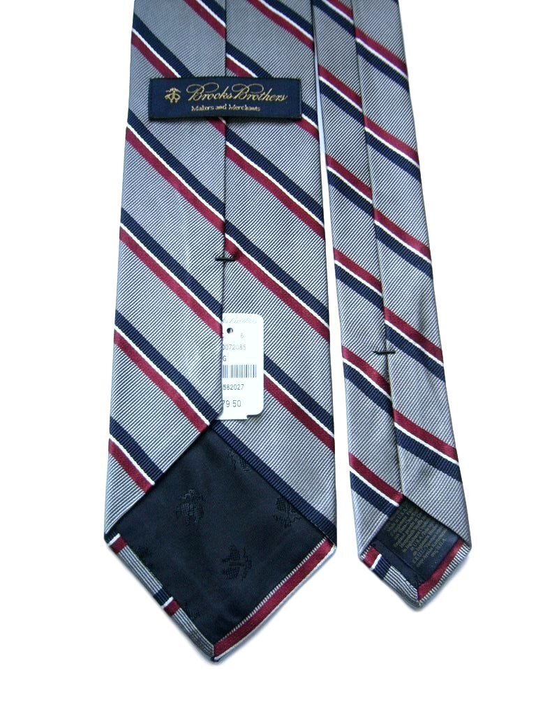 新品【送料込】ブルックスブラザーズ Brooks Brothers グレー地 Split Bar Strip Silk Tie シルク ネクタイ 米国製 ややしわ有