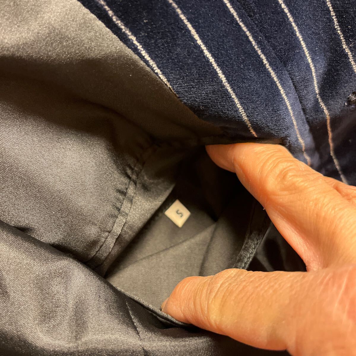 Product name: キャサリンハムネット・ベルベット&ベロアモデルチェスターコート グレーストライプタイプ ネイビー&グレーカラーきれい かわいい