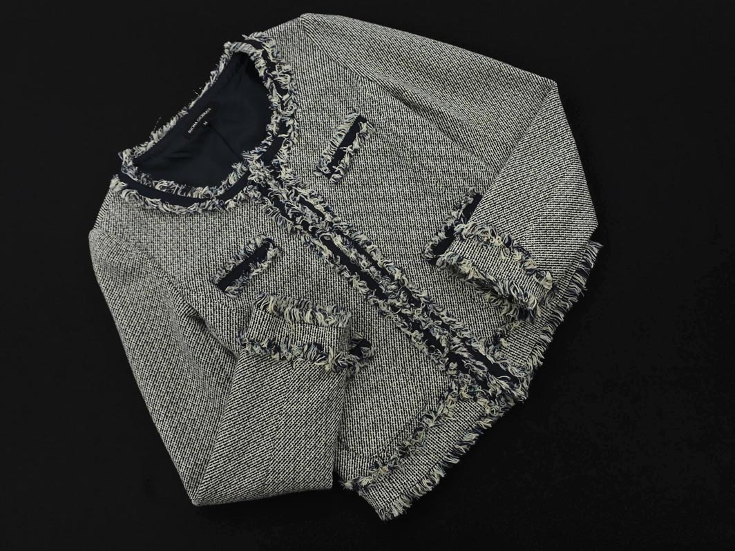 Product name: BUONA GIORNATA ボナジョルナータ ツイード フリンジ ノーカラー ジャケット sizeM/オフホワイトx紺 ◇■ ☆ fba3 レディース