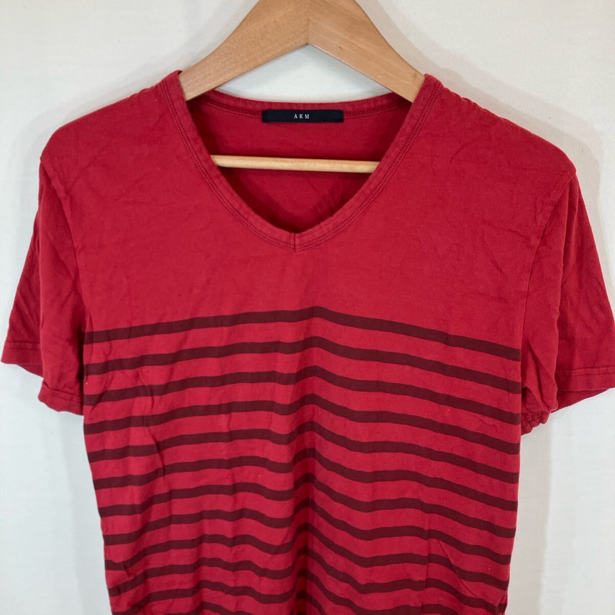 AKM エイケイエム men's メンズ トップス ボーダー 半袖 ショートスリーブ tシャツ size:M collar:レッド