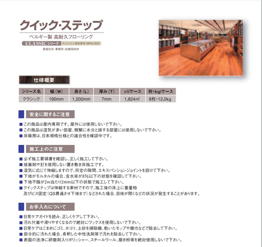 石灰石とプラスチックが主成分の塩ビ系フローリングです。