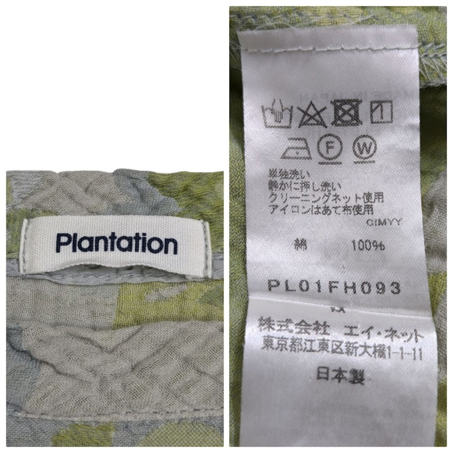 Plantation プランテーション 花柄 総柄 七分袖ワンピース グリーン系 サイズ MB PL01FH093