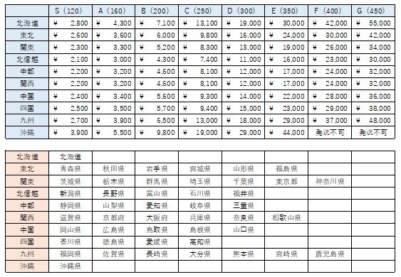 Japan Local Shipping Fee JPY Japan Local Shipping Fee Reference