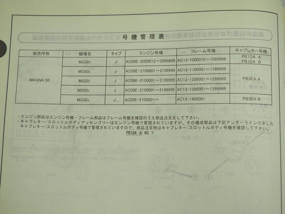 MAGNA 50 AC13-100 110 120 130 140 マグナ 50 パーツリスト 6版 MG50 平成16年1月発行
