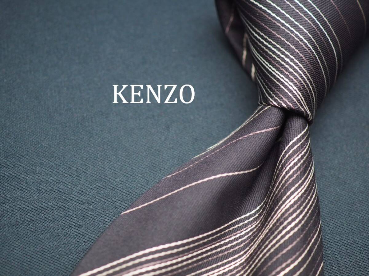 美品【KENZO ケンゾー】 D1156 ブラック シルバー SILK ブランド ネクタイ 古着 良品