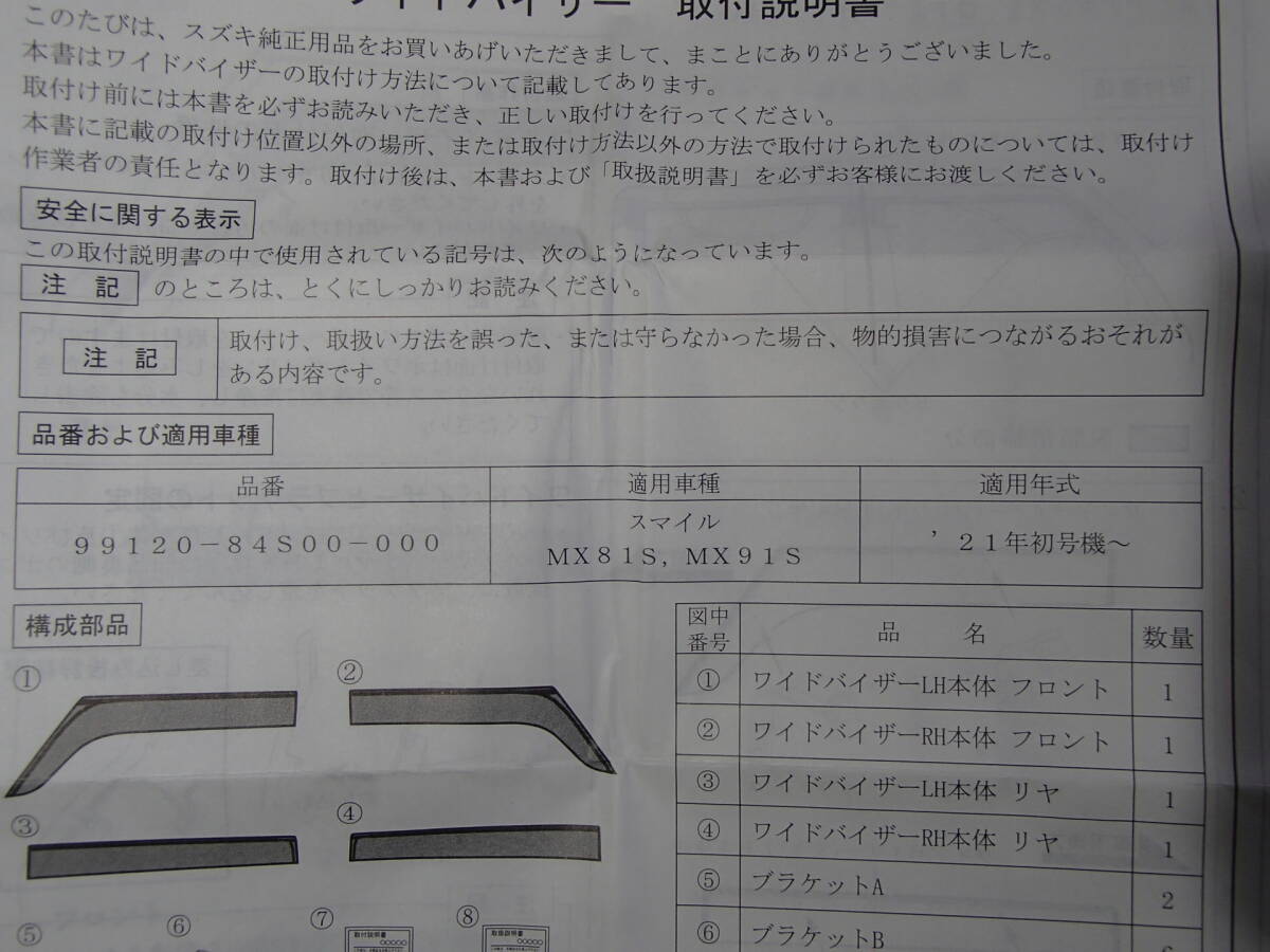 Product name: 新品未使用★SUZUKI★スズキ 純正 MX81S/MX91S ワゴンR スマイル ワイドドアバイザー 3枚セット 左リア1枚中古