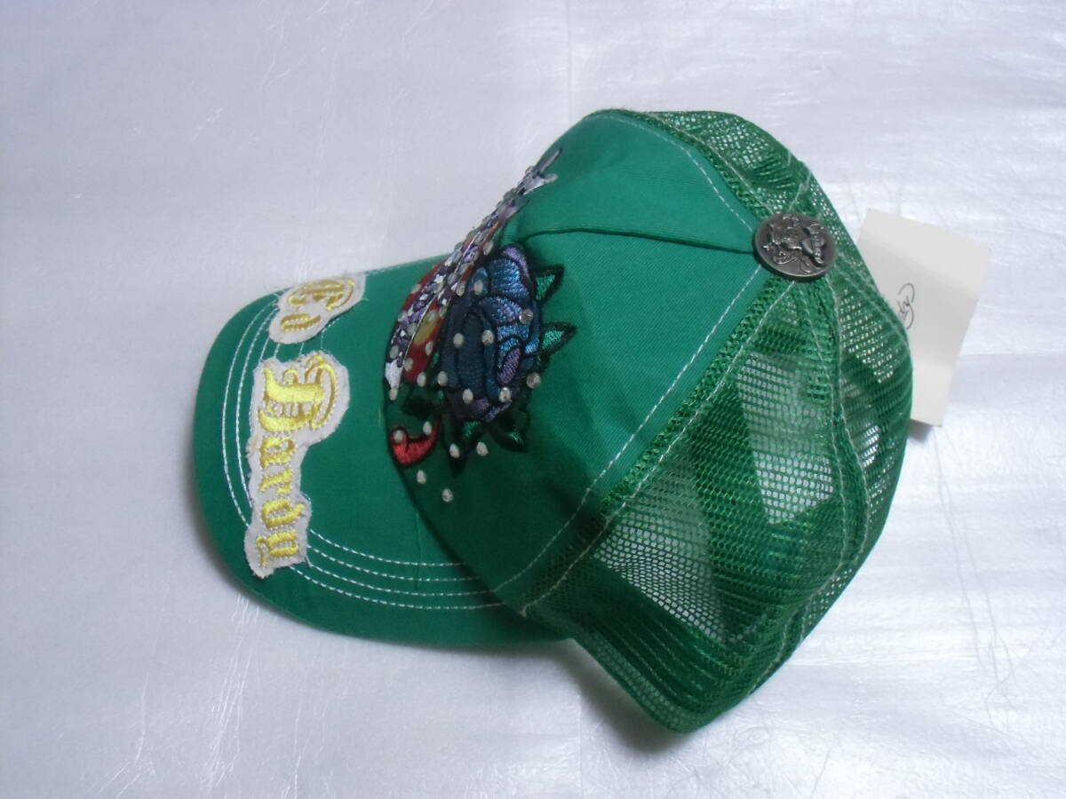 Product name: 即決 エド・ハーディー ハート 刺繍 ラインストーン メッシュ キャップ 帽子 グリーン 紙タグ付き 未使用
