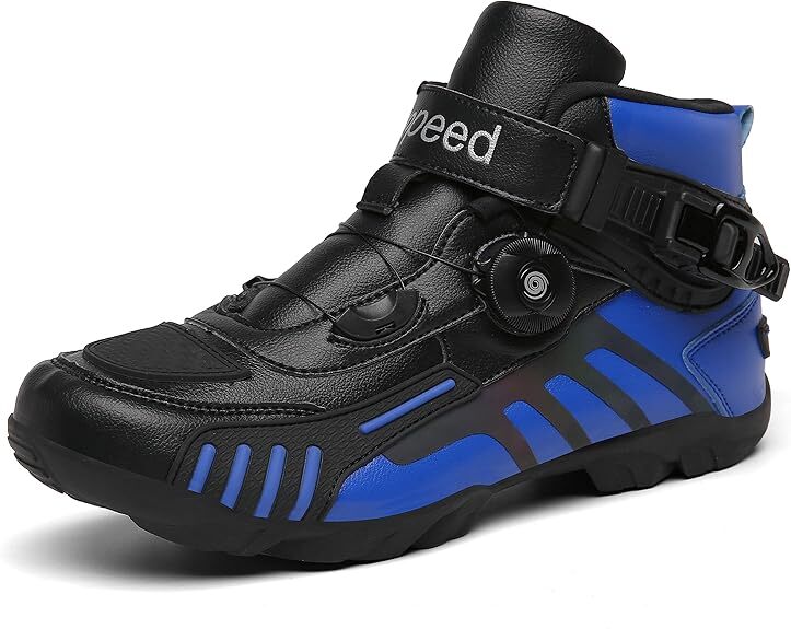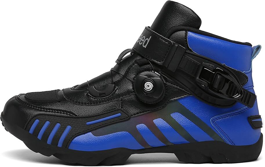 バイク用ブーツ コンバットブーツ ライディングブーツ ライダーブーツ 強化防衛性 レーシングブーツ バイク用靴 ブルー サイズ:28cm
