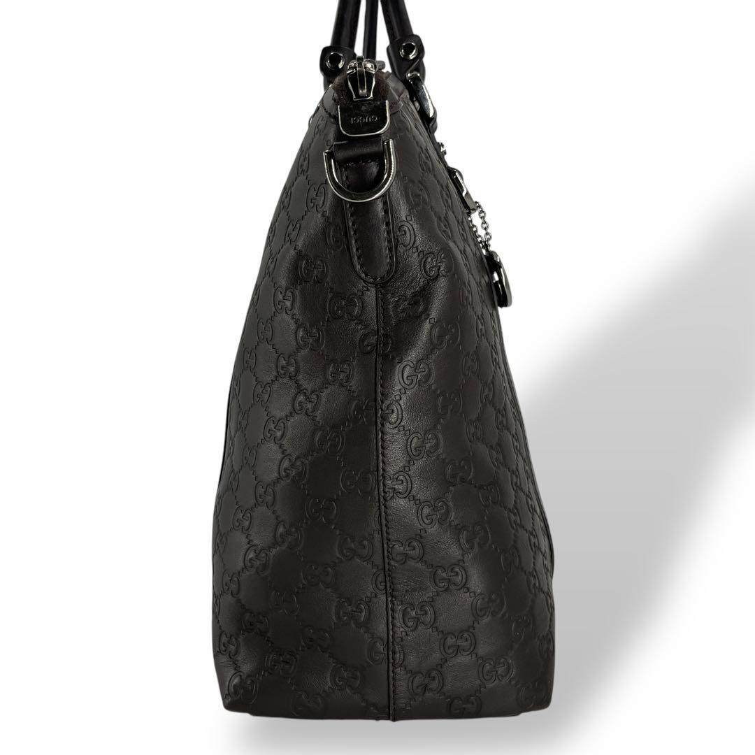 GUCCI トートバッグ ハンドバッグ 焦茶 ブラウン シマレザー A4収納可 シルバー金具 ロゴ刻印