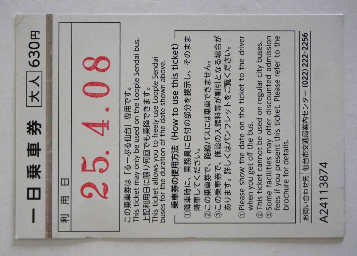 Product name: 仙台市交通局「るーぷる仙台 1日乗車券 大人1枚&パンフレット」使用済品