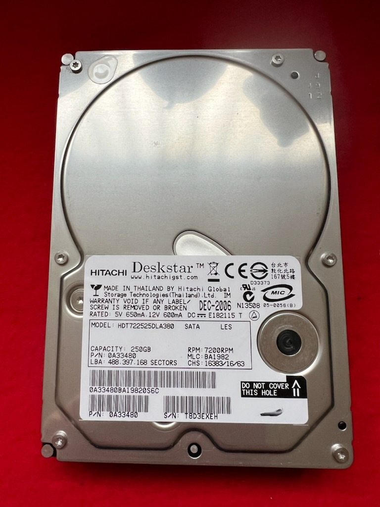 不良返金保証 HITACHI HDT722525DLA380 ディスク容量:250GB SATA300 HDD (AA40)