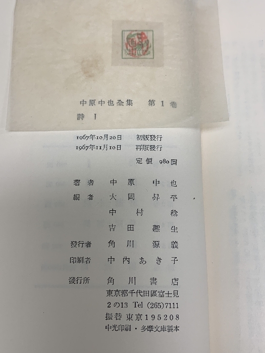 Product name: 中原中也全集 全5巻+別巻 計6冊セット 角川書店