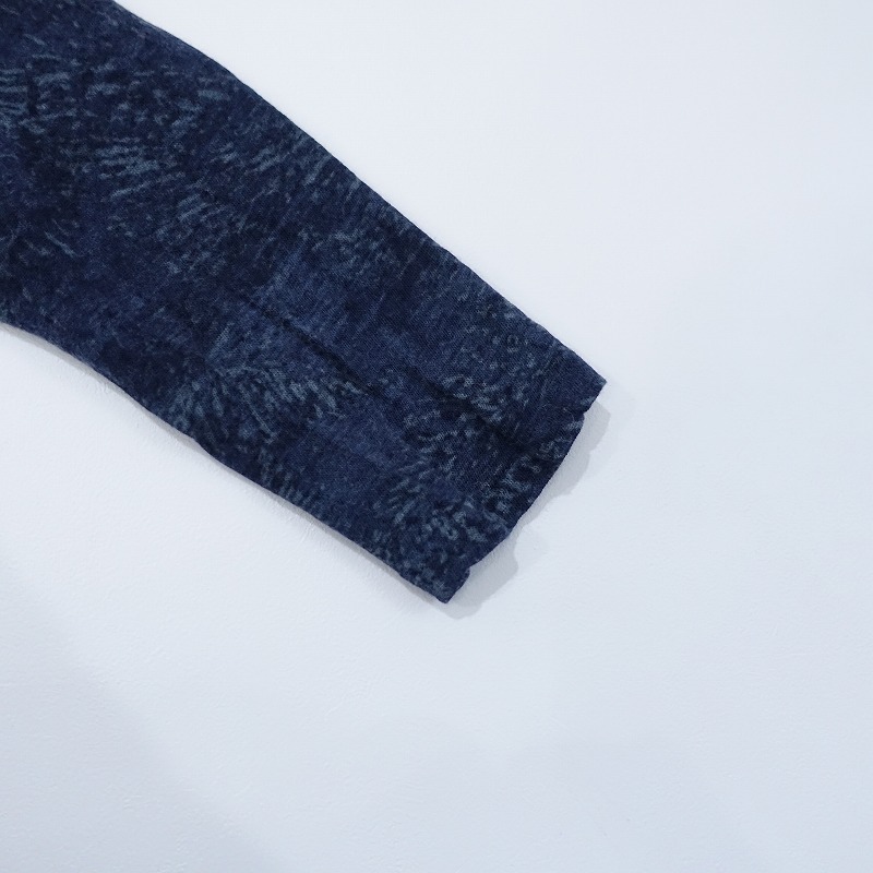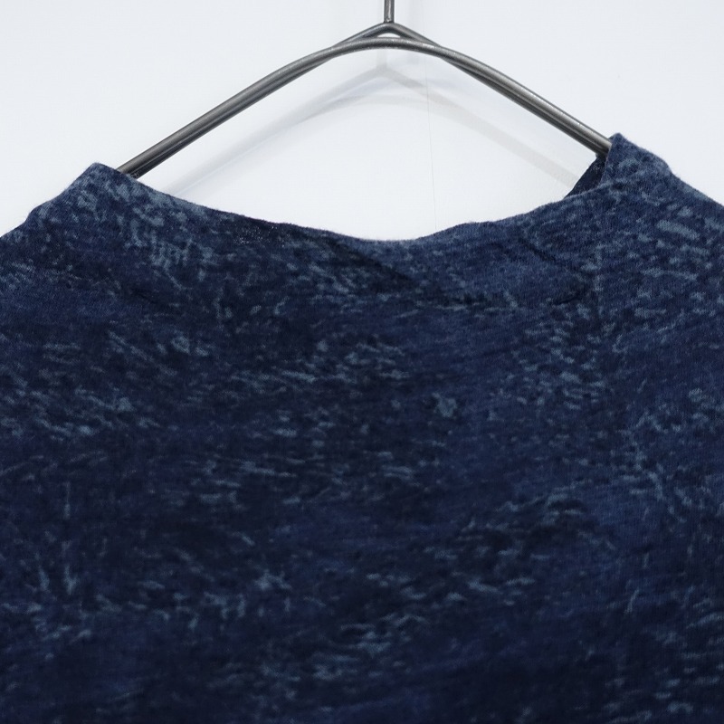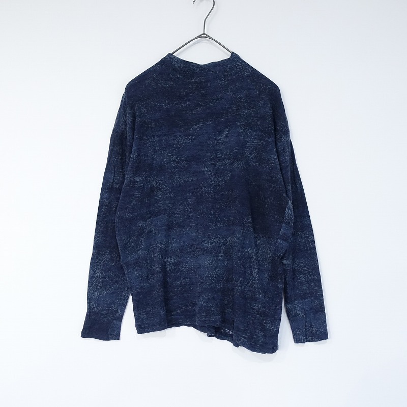 2024年コレクションpas de calaisのlayer プリント葉脈柄天竺ボトルネックプルオーバーです。カラーはネイビー×サックスで、葉脈柄のやや透け感のある薄手ニット生地で仕立てられております。ボトルネックデザインで、定価(メーカー希望小売価格)17,600円 税込みの商品です。