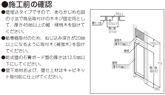 LIXIL・INAX (リクシル・イナックス) 埋込収納棚 紙巻器付