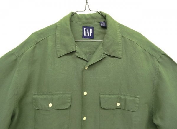 90s ヴィンテージ GAP ギャップ 旧タグ リネン/レーヨン 半袖 オープンカラーシャツ オリーブ VINTAGE 90年代 OLD GAP