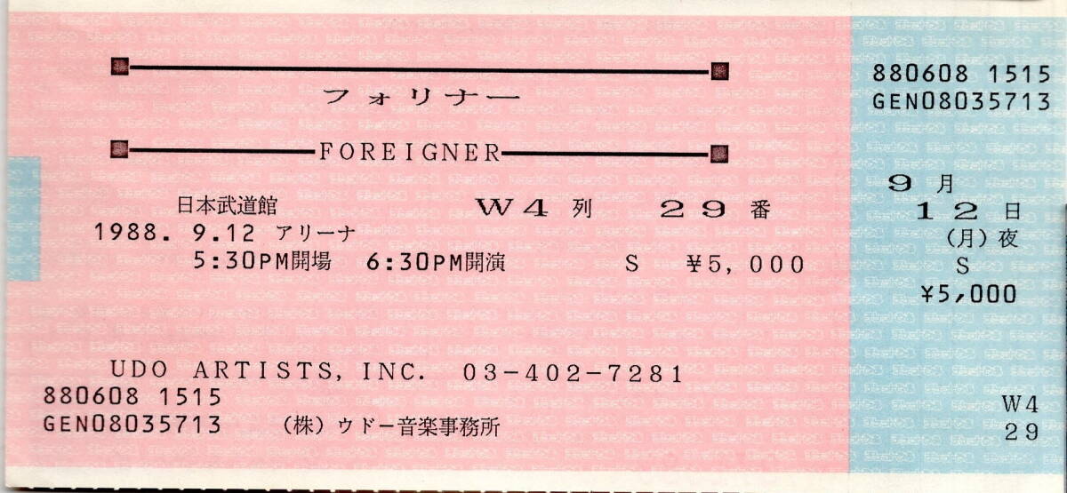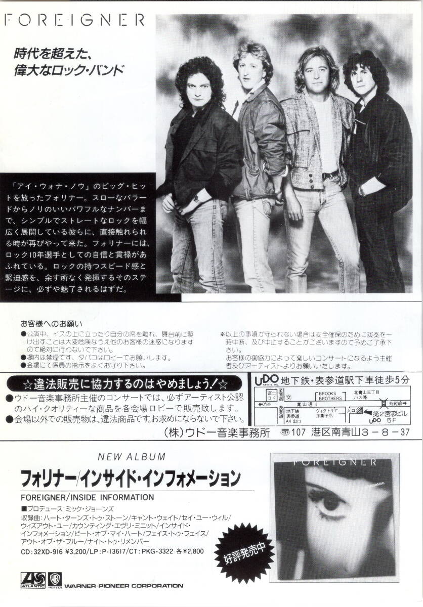 Product name: フォリナー/1988年来日公演チラシ + チケット + 半券 (検索) FOREIGNER