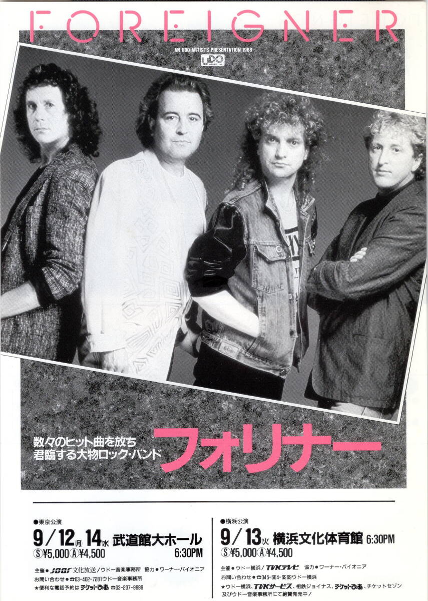 フォリナー/1988年来日公演チラシ + チケット + 半券 (検索) FOREIGNER