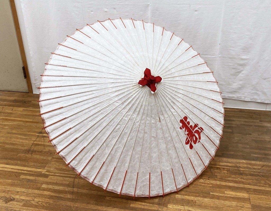 和傘 全長72cm 竹 和紙製 白地 赤 レトロ 和装小物 インテリア 飾り 小道具