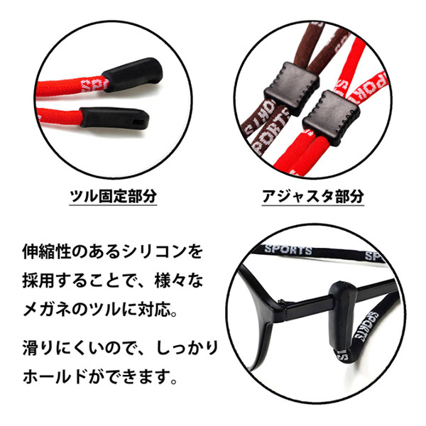 動きの激しいスポーツに活躍、メガネ用スポーツストラップ。