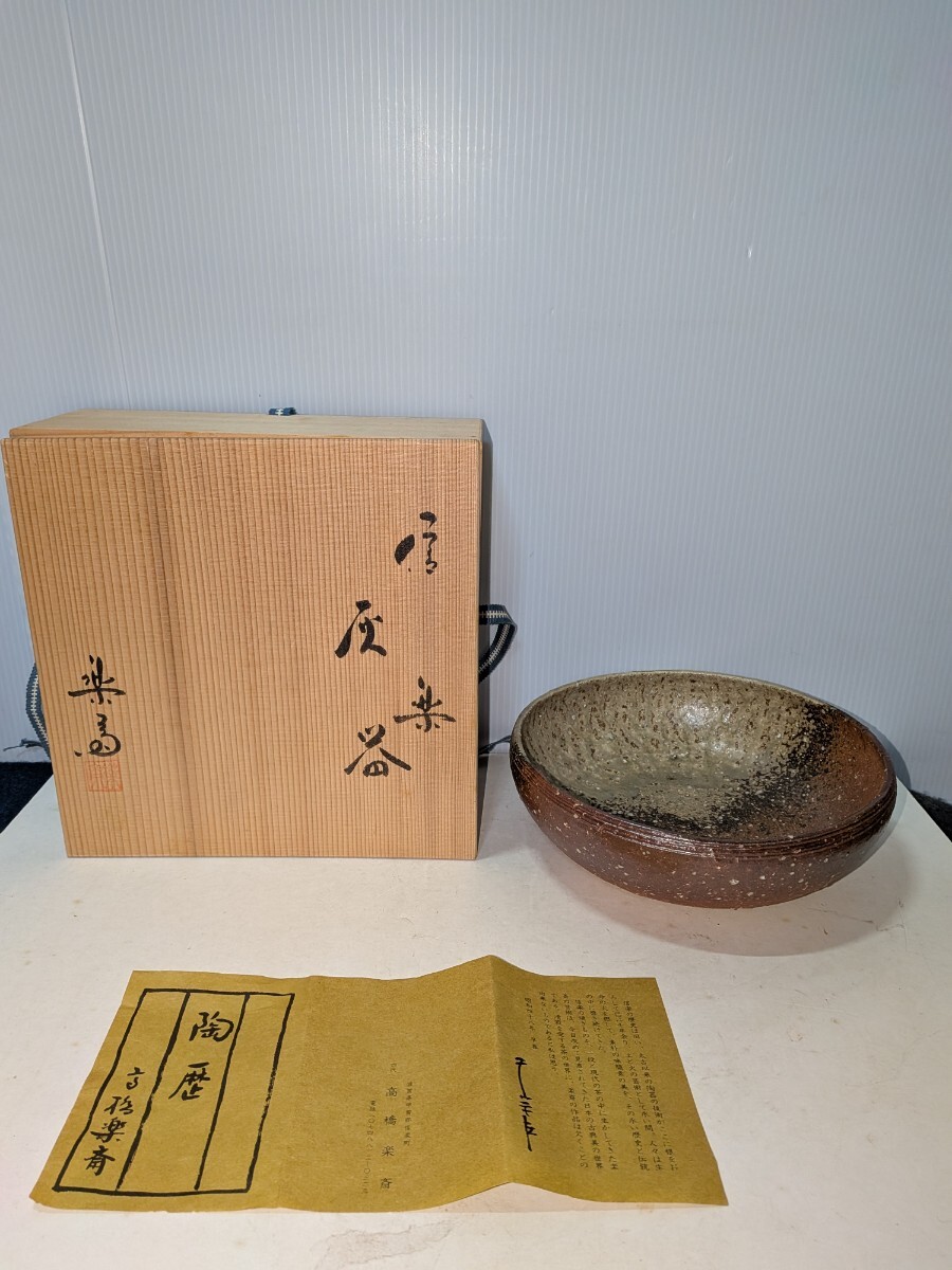 Product name: 陶器 信楽焼 四代 高橋楽斎作 茶道具 炭道具 灰器 炉用 直径約22cm 高さ約8cm 栞/共箱付き
