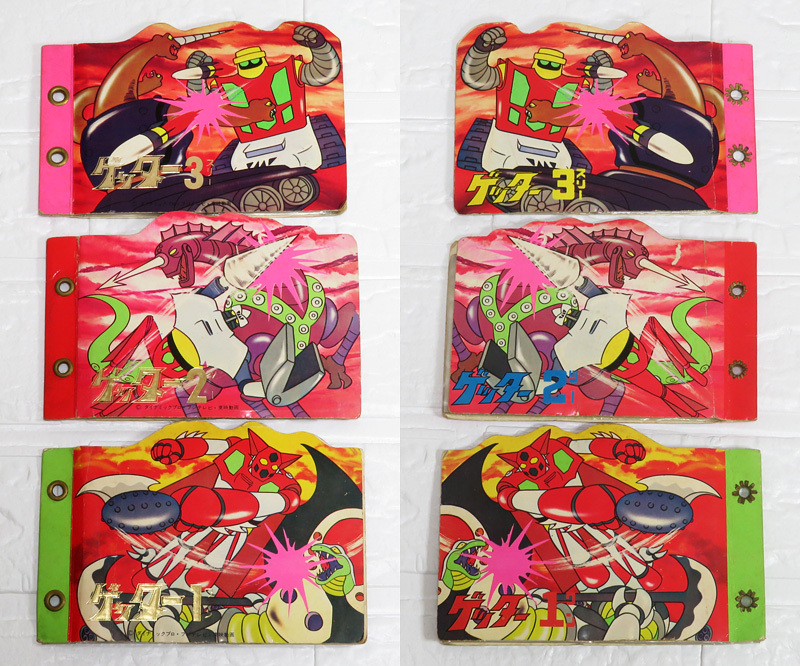 【中古玩具カード】昭和レトロ:天田 / アマダ:ゲッターロボ ミニカード 59枚 アルバム 3冊 まとめ:当時物:ゲッター1・2・3:駄菓子屋