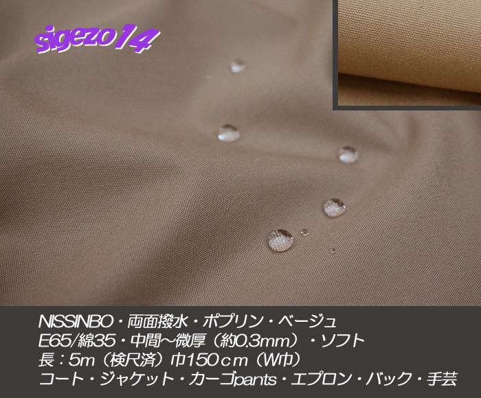 Product name: 1E 長5m W巾 両面撥水 ポプリン ベージュ NISSINBO E65/綿35% 微厚soft/トレンチコート ジャケット・カーゴpants・バック