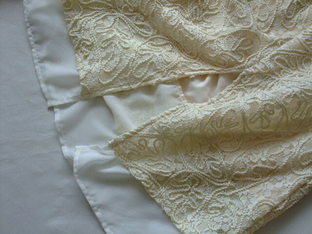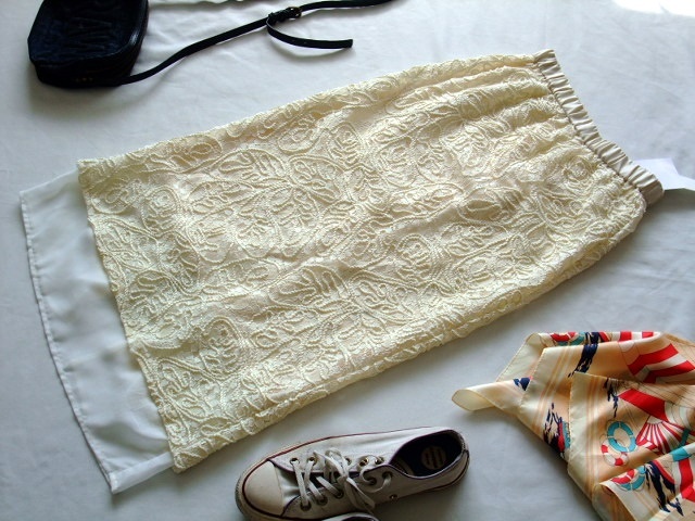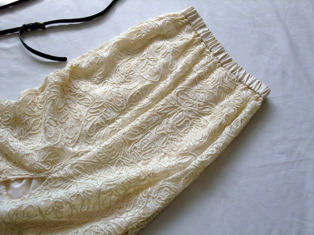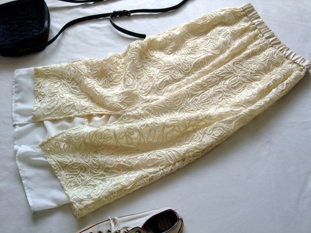 お色はアイボリー系で、レースの重ねデザインが素敵なスカートです。