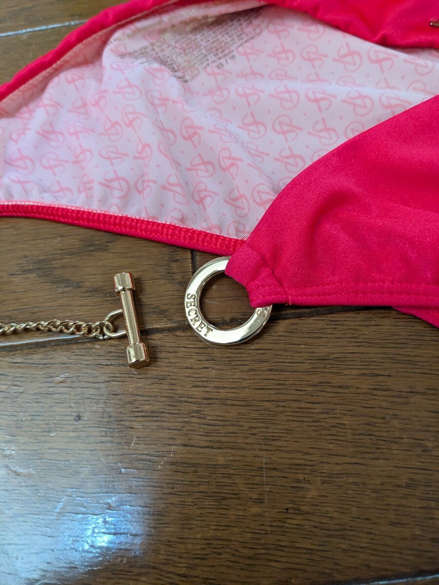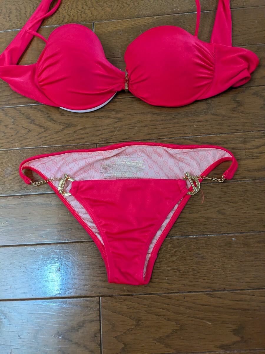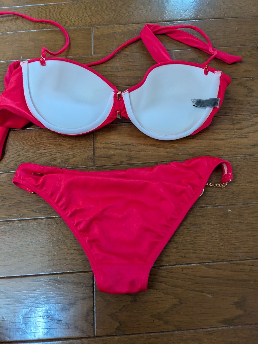 海外のビキニでショーツのサイドがチェーン付き(画像2)プラの肩紐を外すとチューブトップになります。日本サイズでS〜M発送はレターパックプラス、お支払いはかんたん決済でお願い致します。