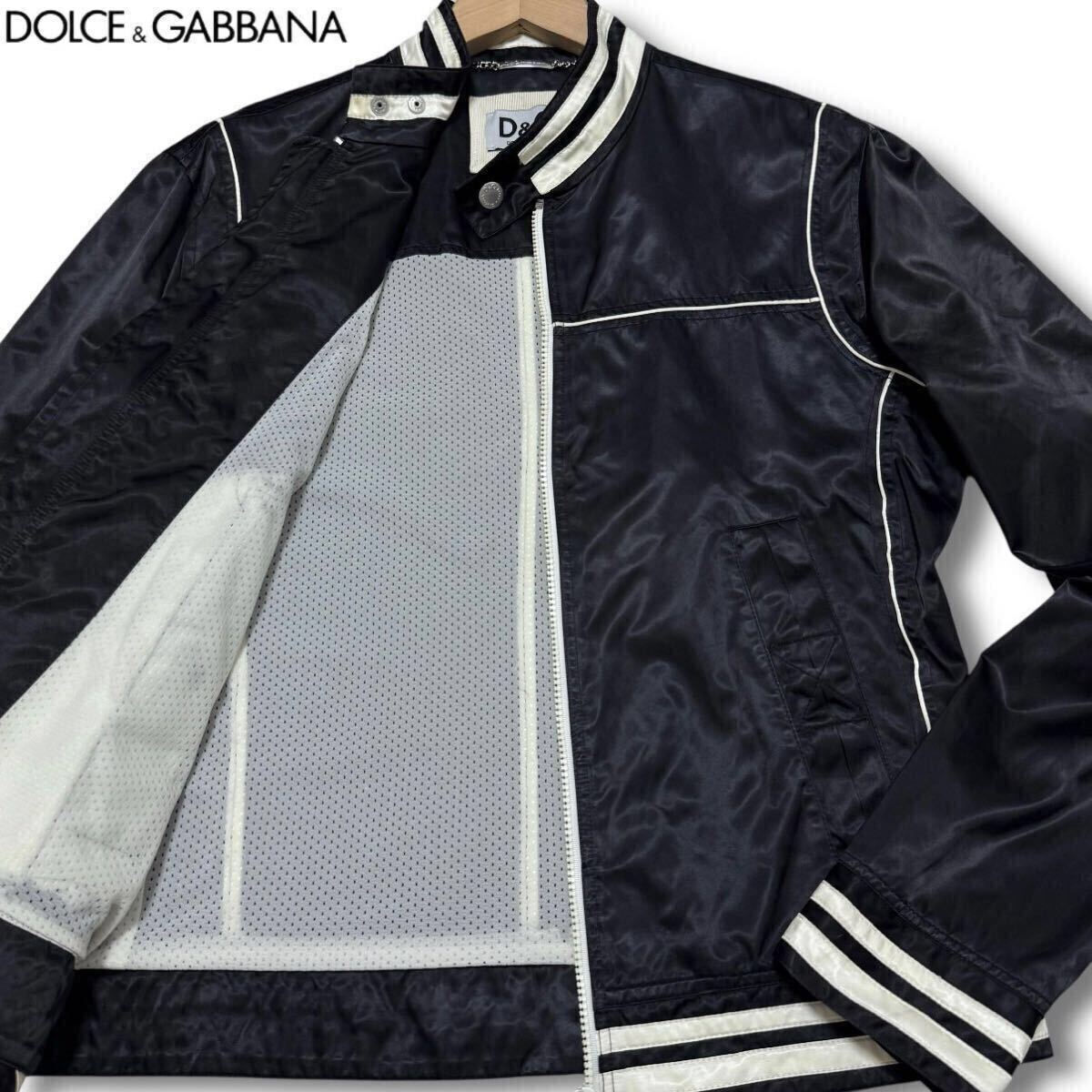 極美品/Lサイズ●ドルチェ&ガッバーナ サテン生地 薄手 ナイロンジャケット スカジャン ブルゾン ジップ 光沢 ブラック 48 DOLCE&GABBANA