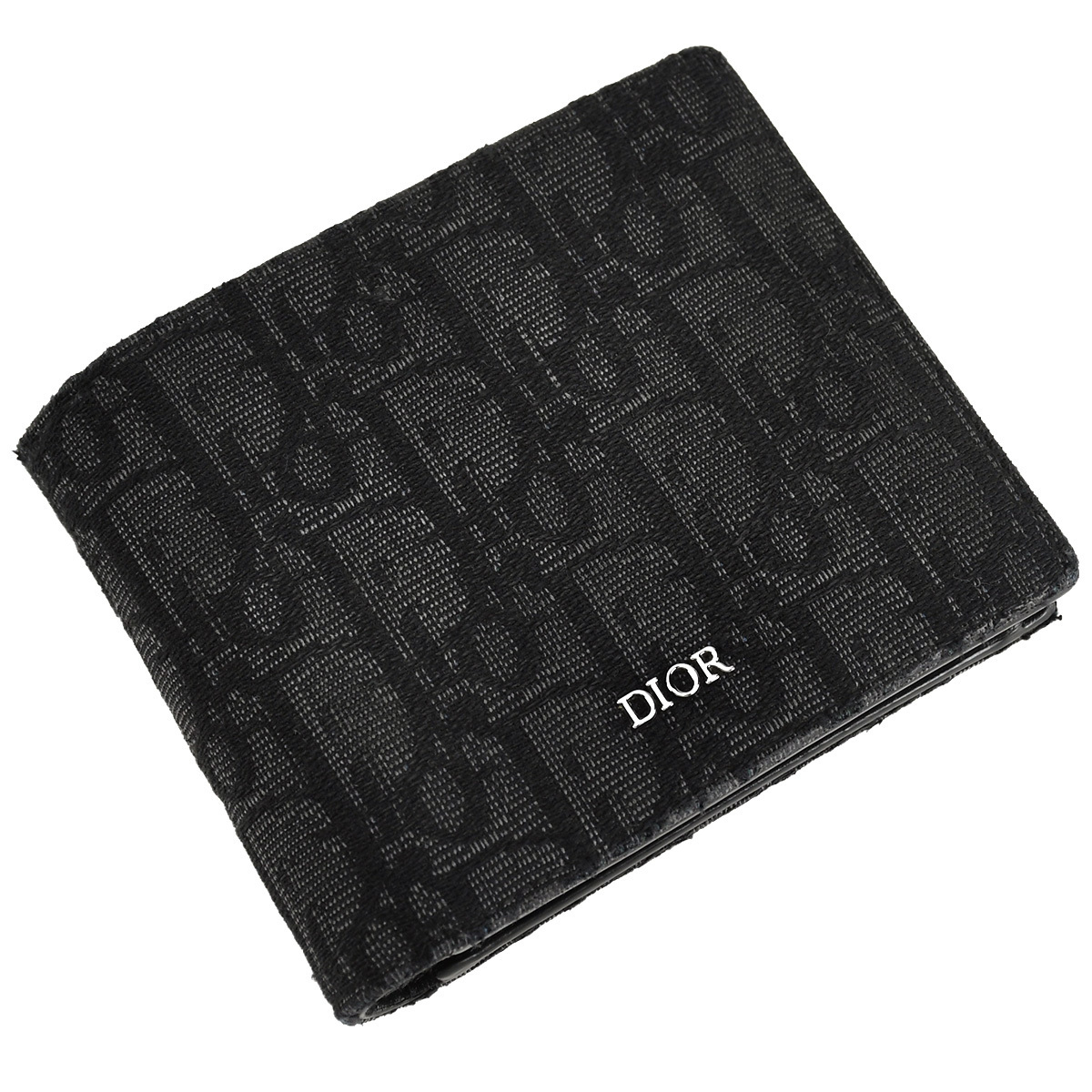 Product name: ディオール DIOR オブリーク コンパクトウォレット 二つ折財布 2OBBC027 ブラック 黒 ジャガードキャンバス レザー メンズ 中古