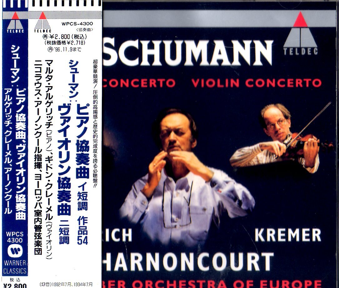シューマン/ ピアノ協奏曲&バイオリン協奏曲/ pf.マルタ・アルゲリッチとvl.ギドン・クレーメルにニコラス・アルノンクール指揮です。